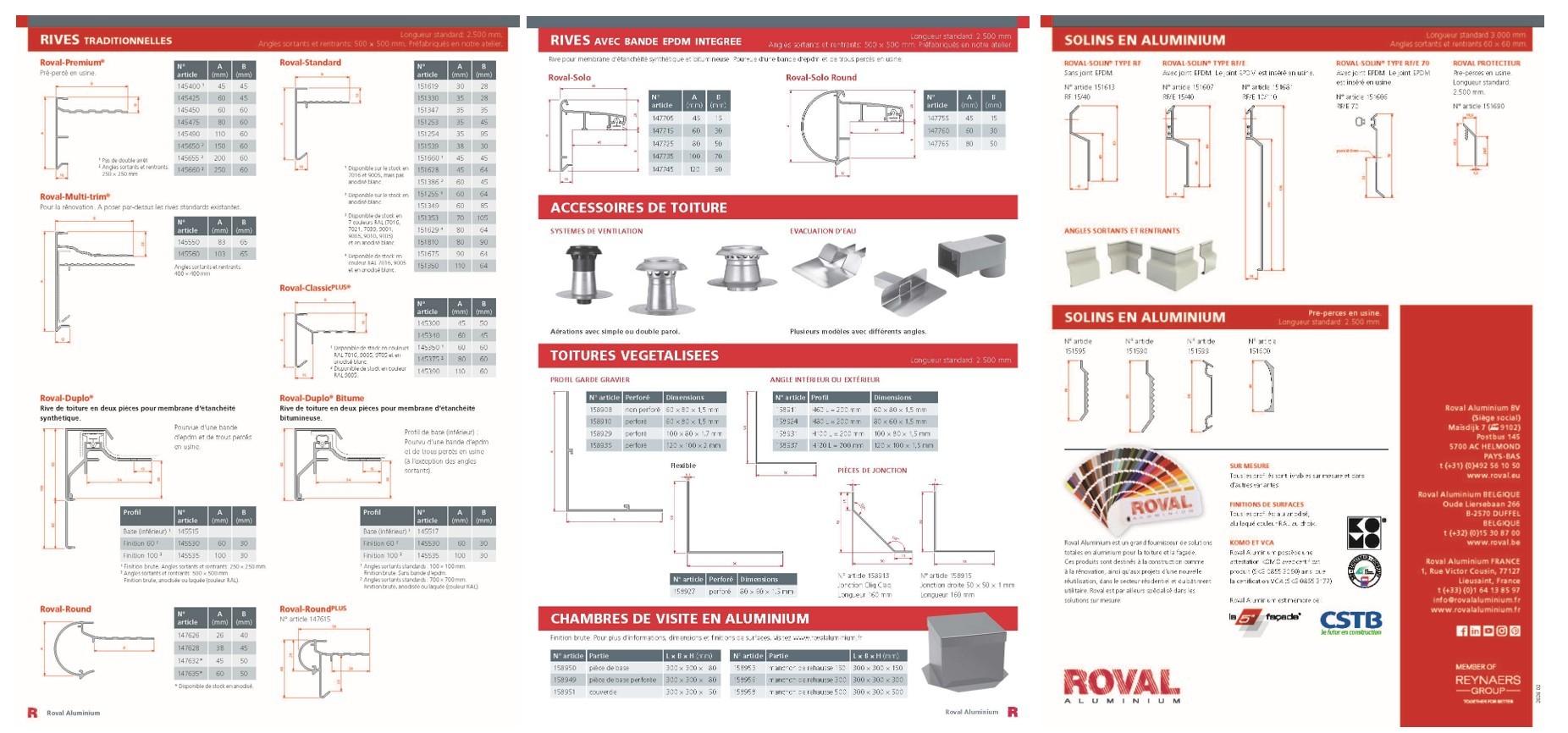 Maintenant disponible : la nouvelle brochure Produits de toiture en aluminium de Roval Aluminium. Vous trouverez ici un aperçu pratique des profilés de bordure de toiture en aluminium, des systèmes de revêtement de façade, des produits pour toiture végétalisée et des profilés de raccordement muraux. Les produits sont clairement classés avec des informations techniques et des dessins.