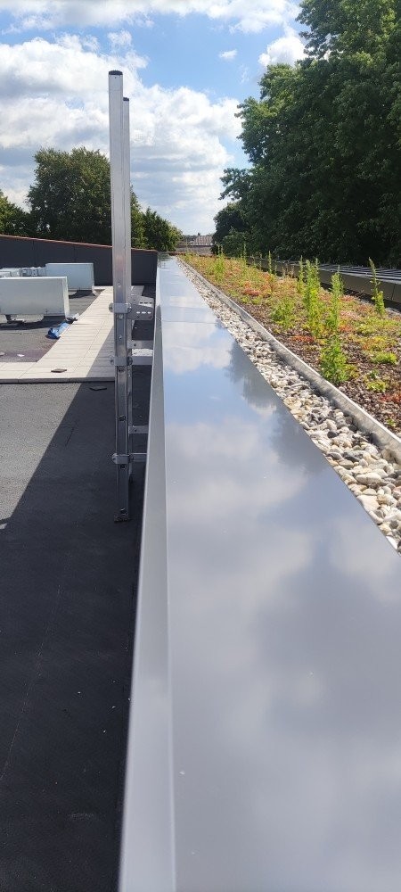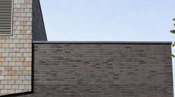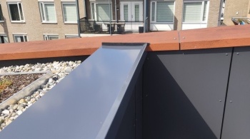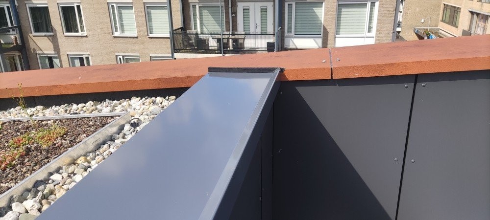 Le toit est fini avec des chaperons de mur en aluminium. Le détail du bâtiment est raffiné, ce qui convient bien au choix des détails en aluminium. Un choix conscient, souligne Keeris : « Nous voulions des lignes nettes, un profilage fort, et un matériau qui reste beau sans tracas. L'aluminium est alors une évidence, il est également malléable. » Les chaperons de mur en aluminium s'intègrent parfaitement à l'image architecturale de la Kei. Ils suivent les lignes inclinées du bâtiment et assurent une finition calme des façades. Le travail sur mesure en aluminium était crucial dans l'exécution des formes rondes et des angles vifs. « Surtout à la partie théâtre et à l'entrée, nous avons demandé le maximum aux artisans. Il est alors agréable de travailler avec des matériaux qui se plient, sans sacrifier la qualité. »