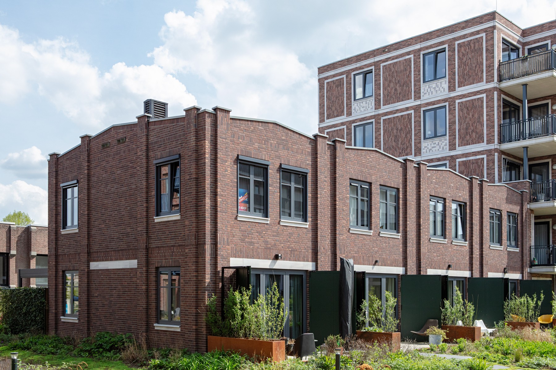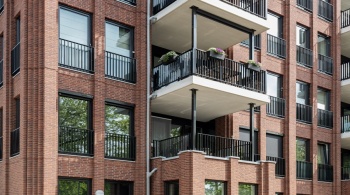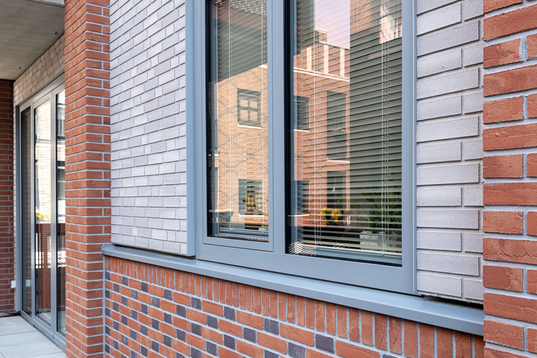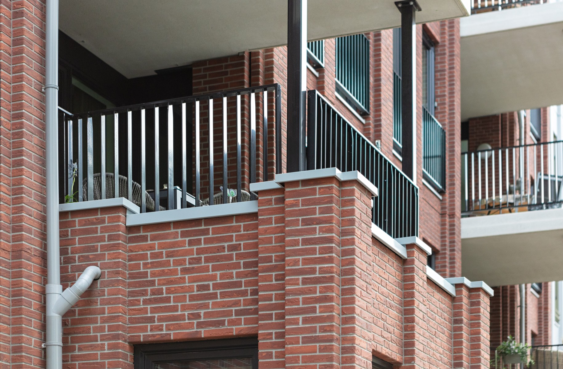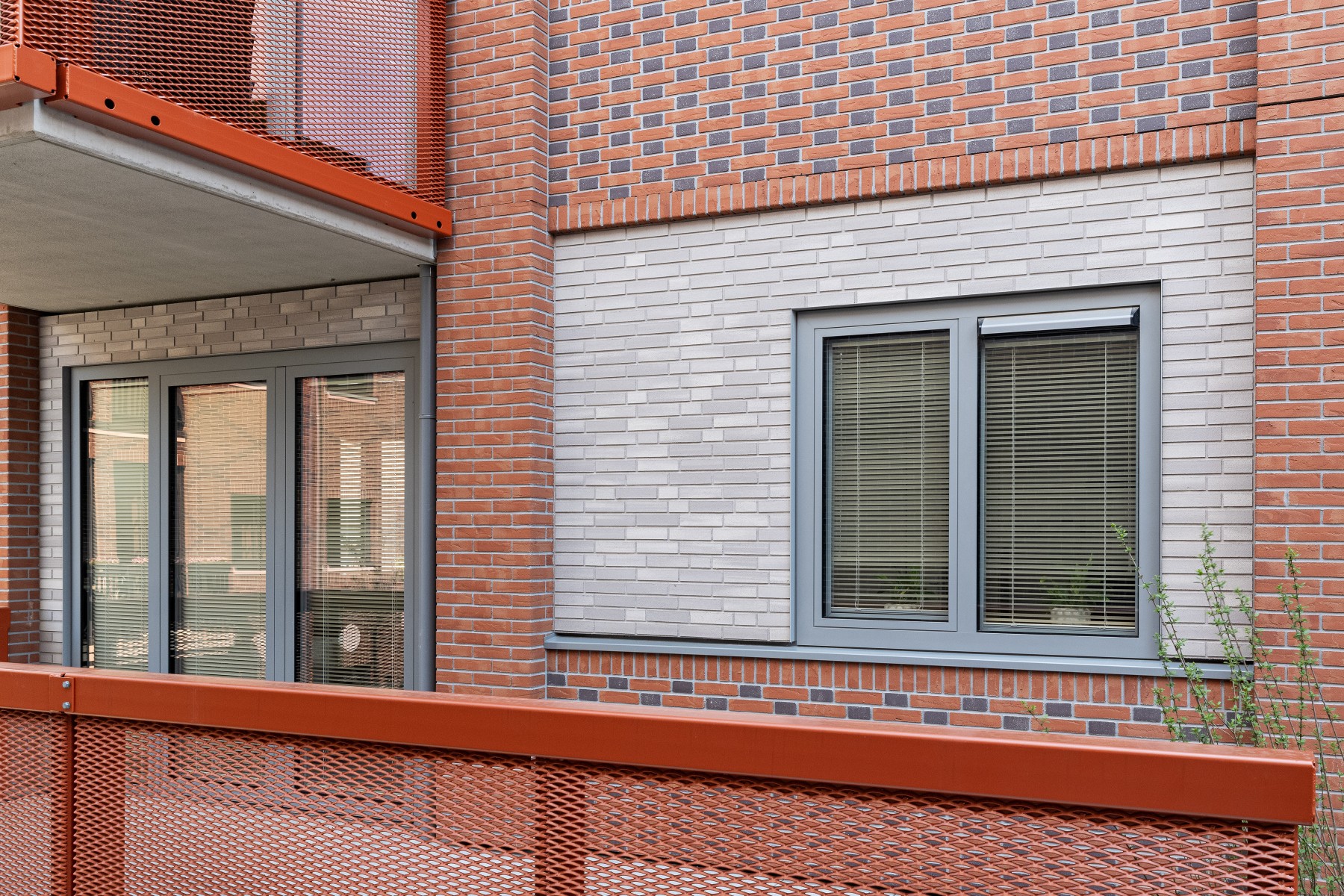 Pour les bavettes et les chaperons de mur, Joost a délibérément choisi l'aluminium en raison de la facilité avec laquelle le matériau peut être détaillé. Les chaperons de mur en aluminium sont pourvus de balustres avec garde-corps à certains endroits, parfois trois superposés. « Les chaperons de mur en aluminium assurent une finition soignée aux bords où les résidents se rapprochent, tels que les balcons et les terrasses sur le toit. Ici, l'aluminium n'est pas seulement esthétiquement attrayant, mais aussi pratique en raison de sa durabilité et de son entretien facile. De plus, cela nous a permis de créer une image d'architecture traditionnelle en béton d'une manière légère et innovante, adaptée à la méthode de construction à ossature bois », selon Verbeek. De plus, l'aluminium a aidé à camoufler les joints horizontaux entre les panneaux de façade. « Grâce à l'application astucieuse d'ouvrages en tôle d'aluminium, les joints disparaissent ça et là de manière ciblée dans le design. »