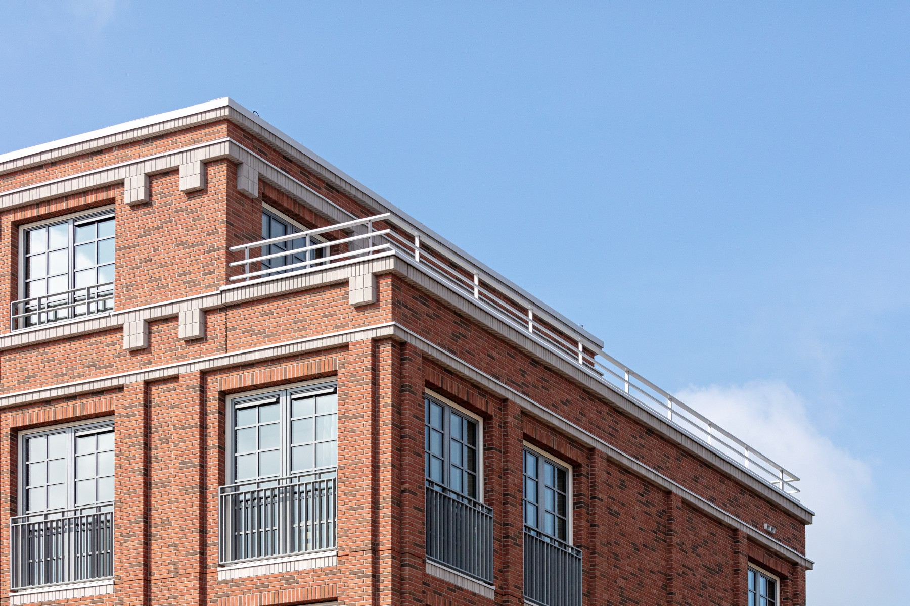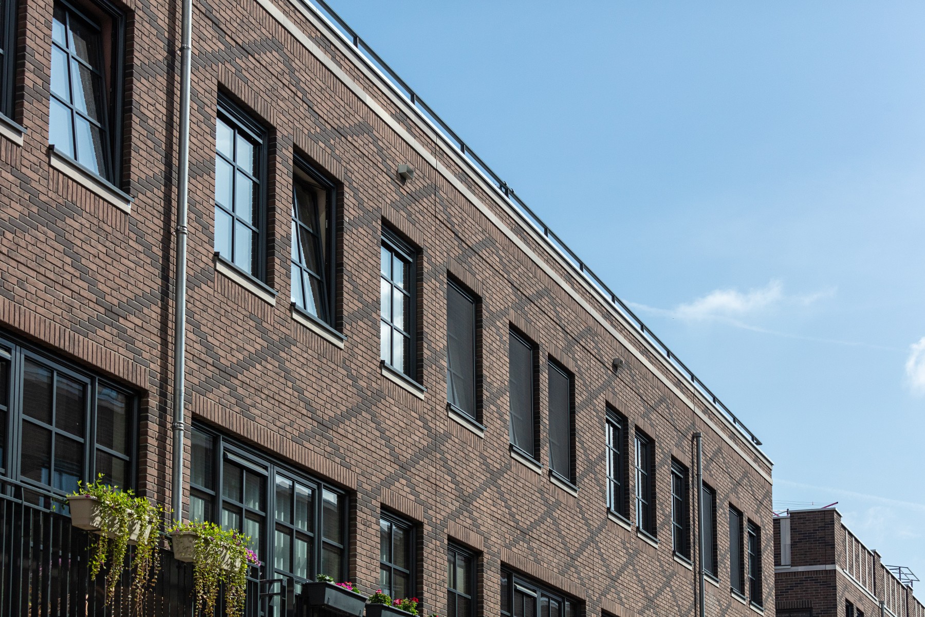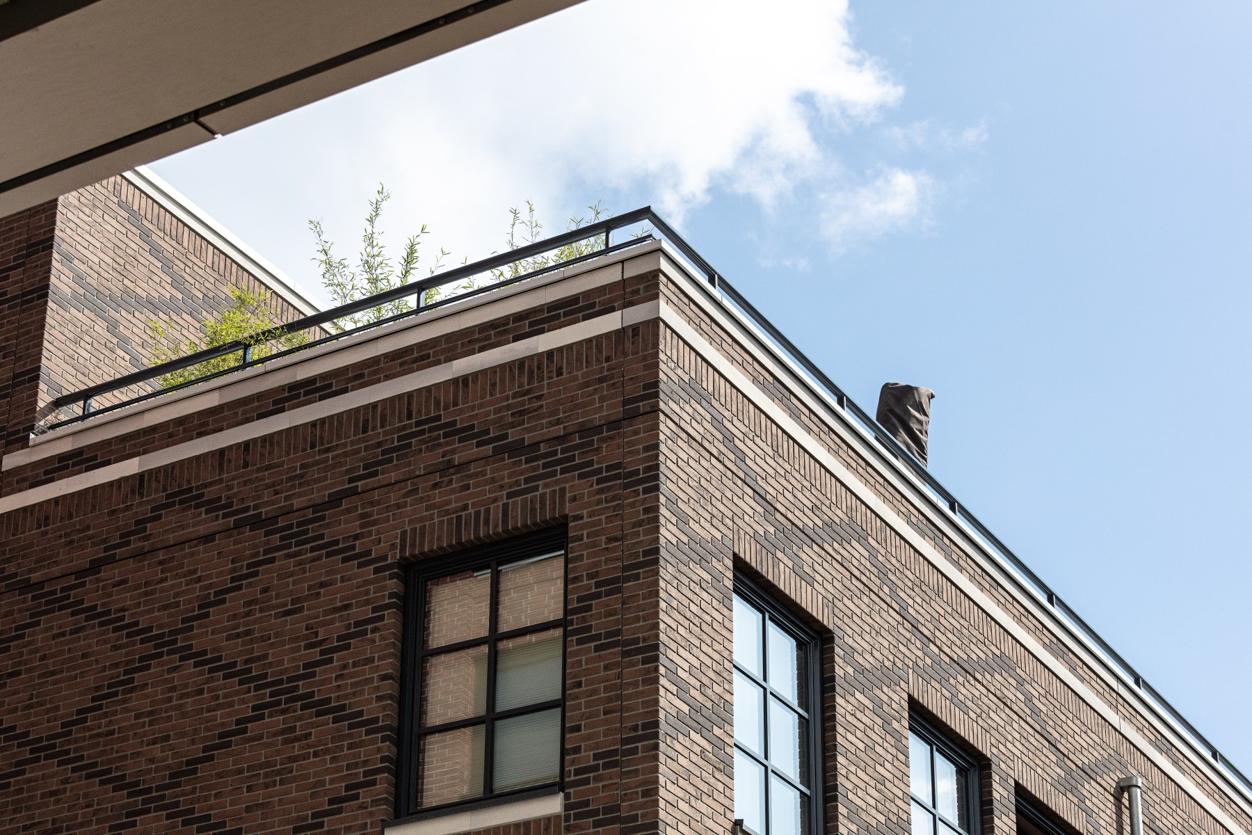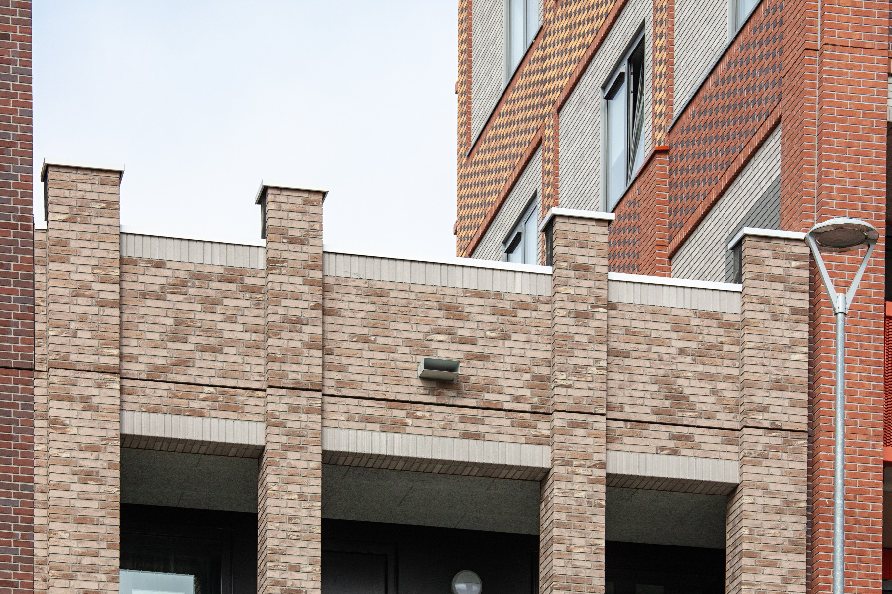 Pour les bavettes et les chaperons de mur, Joost a délibérément choisi l'aluminium en raison de la facilité avec laquelle le matériau peut être détaillé. Les chaperons de mur en aluminium sont pourvus de balustres avec garde-corps à certains endroits, parfois trois superposés. « Les chaperons de mur en aluminium assurent une finition soignée aux bords où les résidents se rapprochent, tels que les balcons et les terrasses sur le toit. Ici, l'aluminium n'est pas seulement esthétiquement attrayant, mais aussi pratique en raison de sa durabilité et de son entretien facile. De plus, cela nous a permis de créer une image d'architecture traditionnelle en béton d'une manière légère et innovante, adaptée à la méthode de construction à ossature bois », selon Verbeek. De plus, l'aluminium a aidé à camoufler les joints horizontaux entre les panneaux de façade. « Grâce à l'application astucieuse d'ouvrages en tôle d'aluminium, les joints disparaissent ça et là de manière ciblée dans le design. »