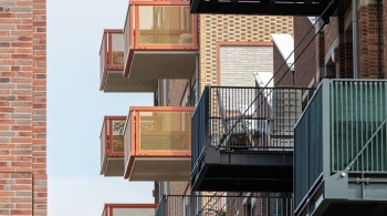 L'Oranjekade se distingue par l'utilisation de techniques de construction innovantes, telles que des éléments de façade préfabriqués à ossature bois entièrement finis. Tous les bâtiments, à l'exception du bâtiment monumental EDAH, ont été construits avec ces éléments de façade préfabriqués et finis avec des plaquettes de parement minérales. « Ce fut initialement un défi », reconnaît Verbeek. « Mais la préfabrication nous a permis de construire rapidement, efficacement et sans échafaudage. Nous avons ainsi pu construire de manière économique sans compromettre la qualité et l'esthétique. »