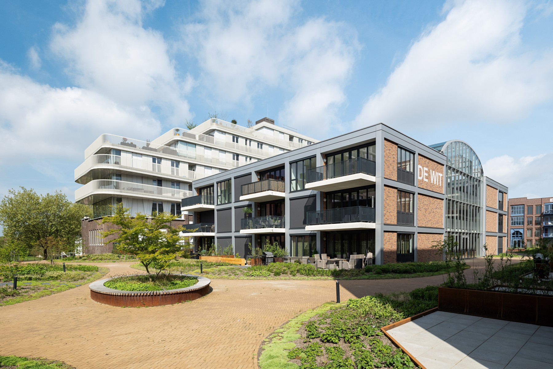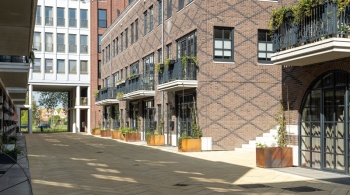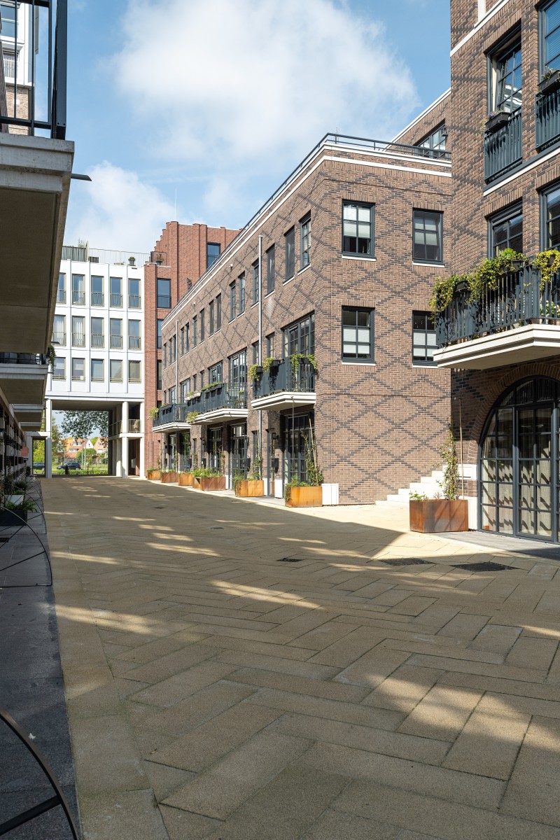 Joost Verbeek: « Dès le début, nous voulions créer quelque chose qui corresponde vraiment à Helmond », raconte-t-il. « Avec l'urbaniste, nous avons cherché les qualités de l'emplacement : le canal, l'allée d'arbres et la façade monumentale de l'ancien siège d'EDAH. Le plan se compose de treize blocs résidentiels différents. Quatre de ces blocs résidentiels portent les noms des fondateurs originaux d'EDAH. Entre autres, cela rend l'histoire du lieu tangible. Le présent et le passé sont ainsi connectés. »