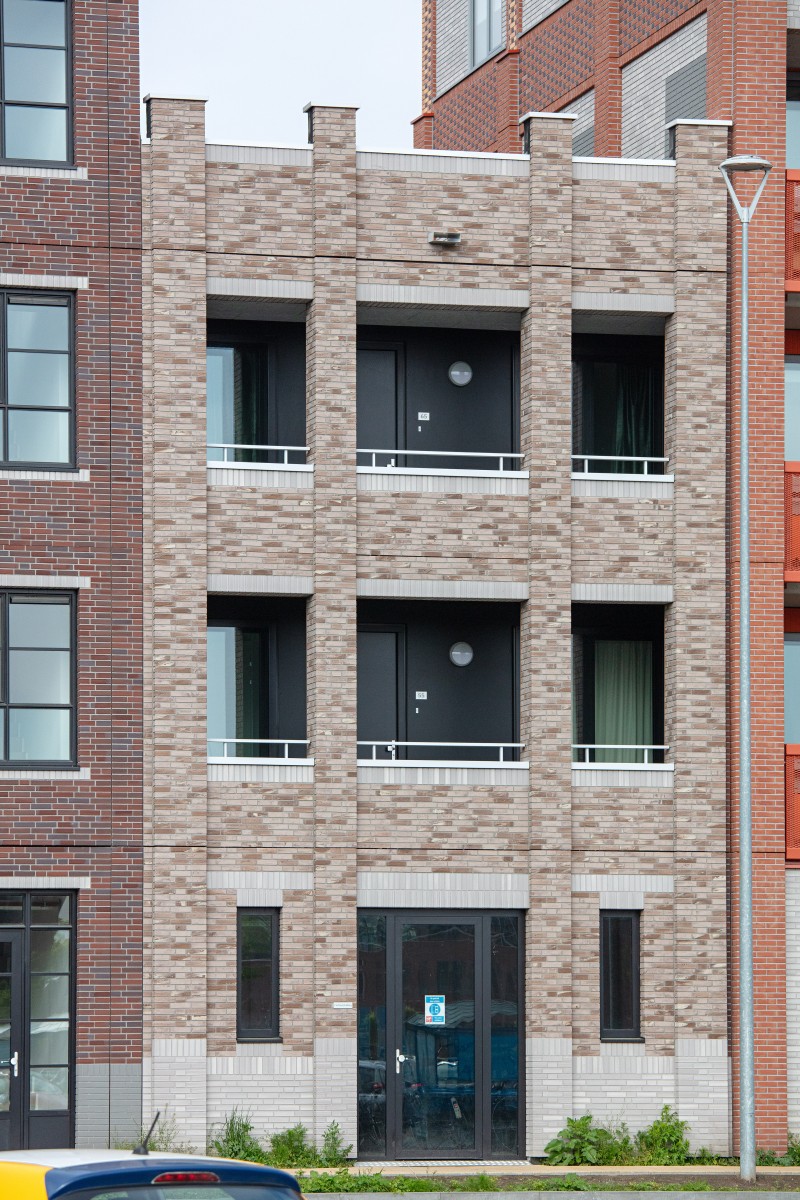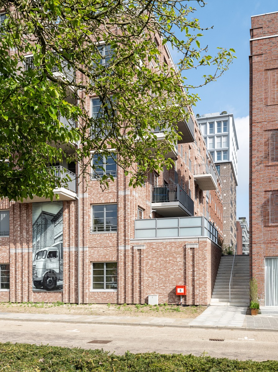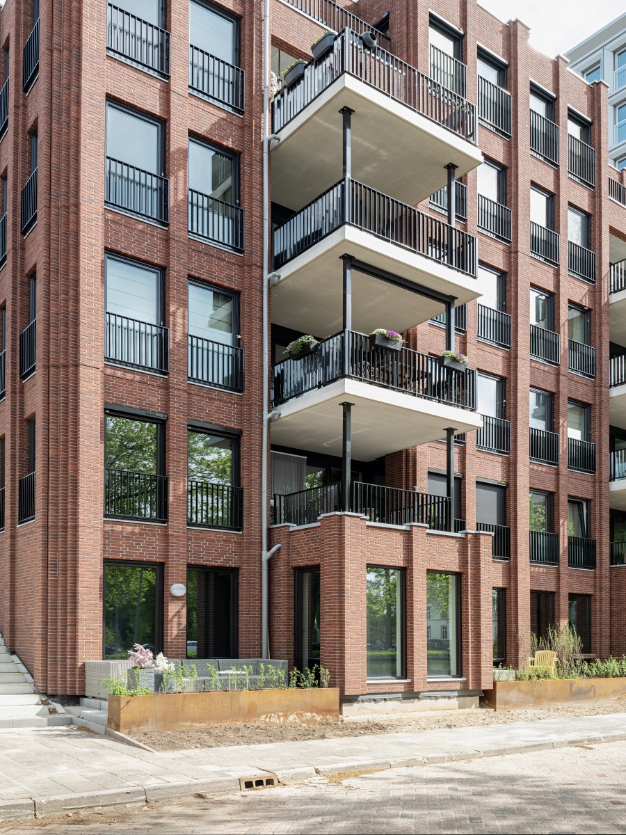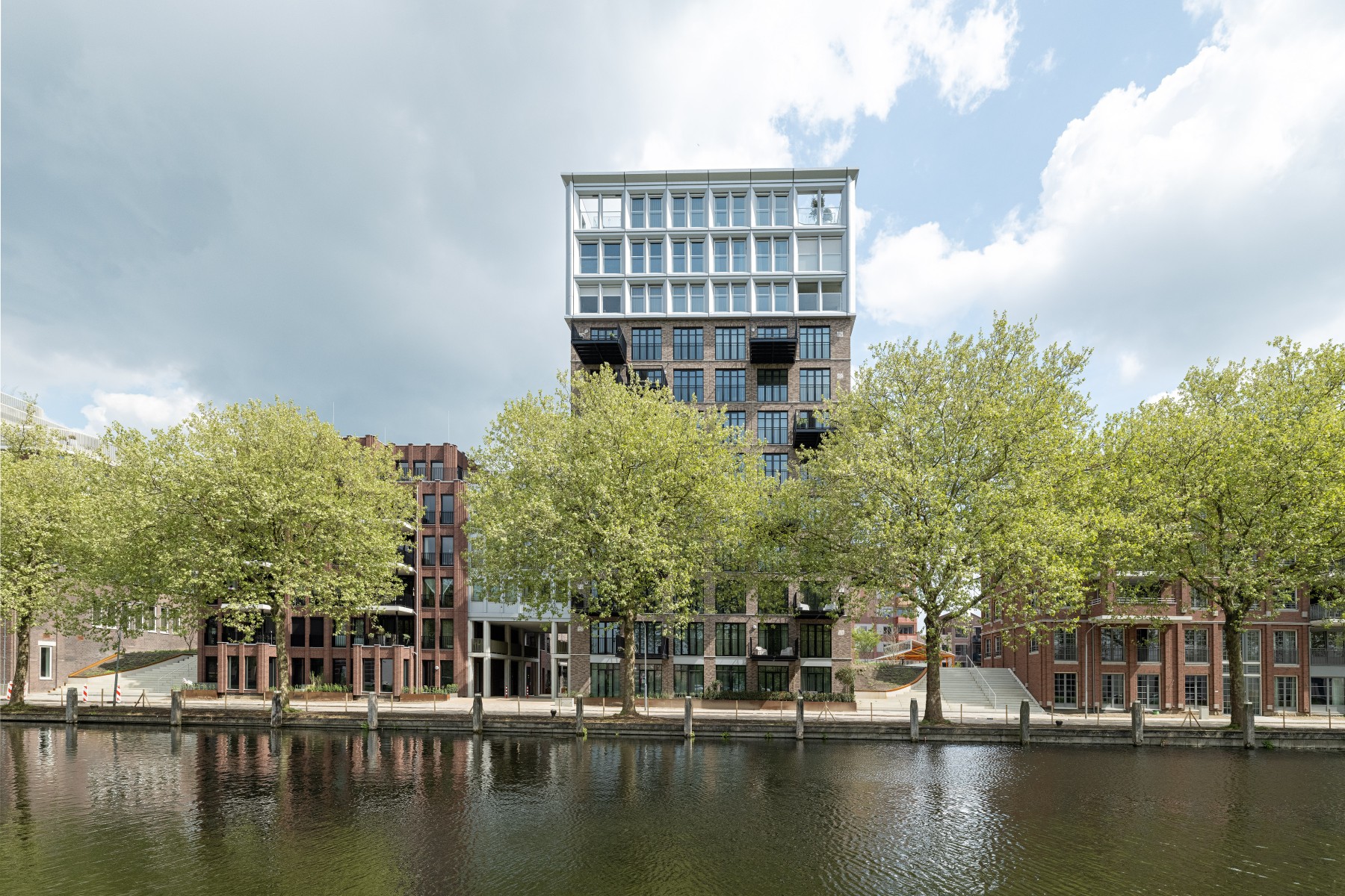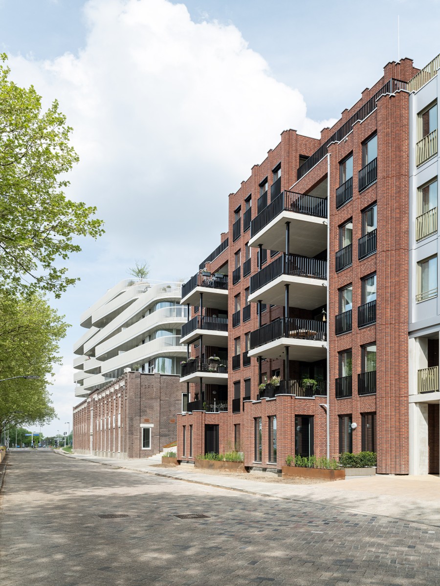 Le complexe résidentiel se compose de treize blocs résidentiels qui forment ensemble une unité claire, mais qui possèdent néanmoins chacun un caractère propre. « Nous avons recherché la variation au sein de la cohérence », remarque Verbeek. « La largeur des bâtiments résidentiels le long du canal est presque identique, inspirée par la largeur du bâtiment monumental EDAH. Cela assure rythme et reconnaissance. »