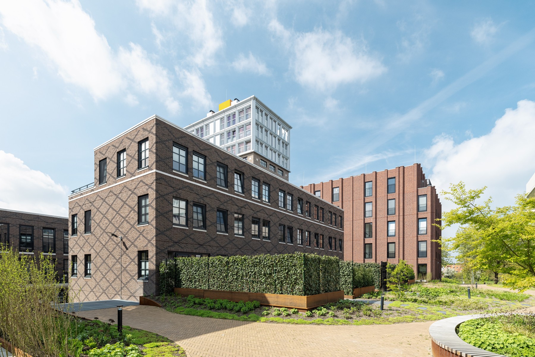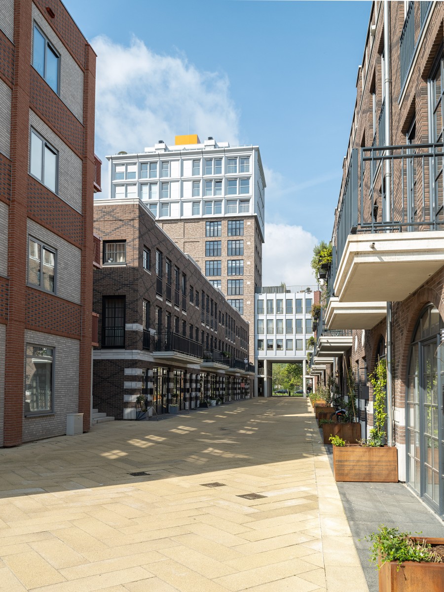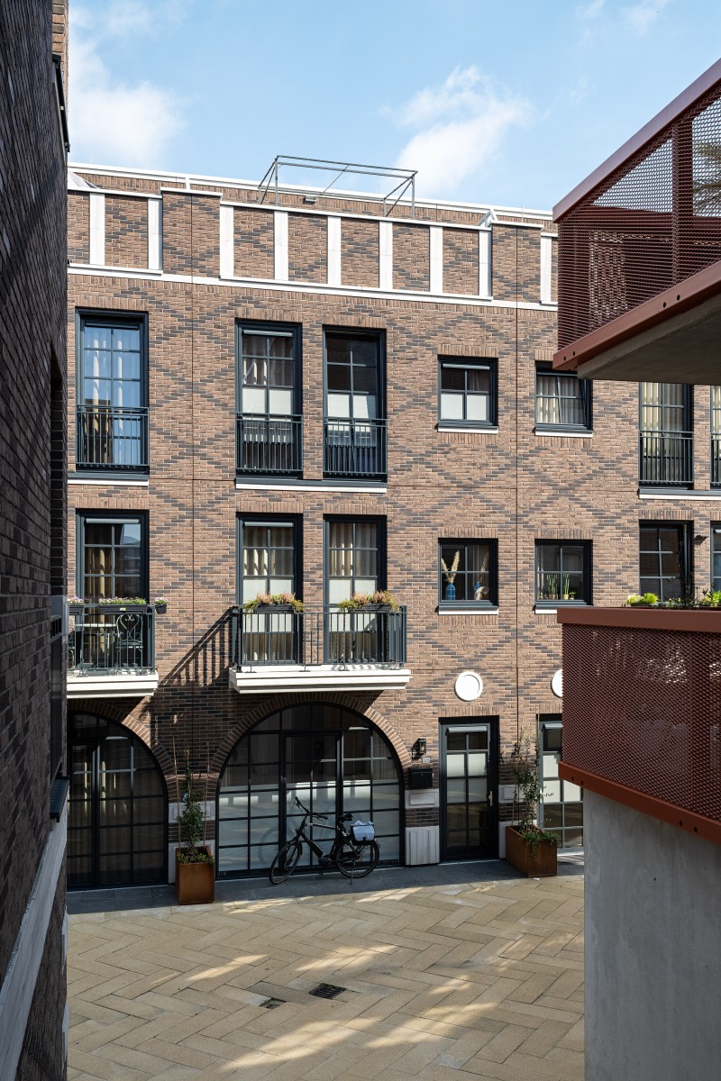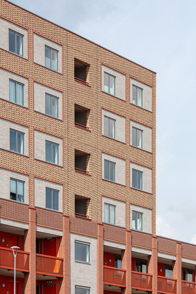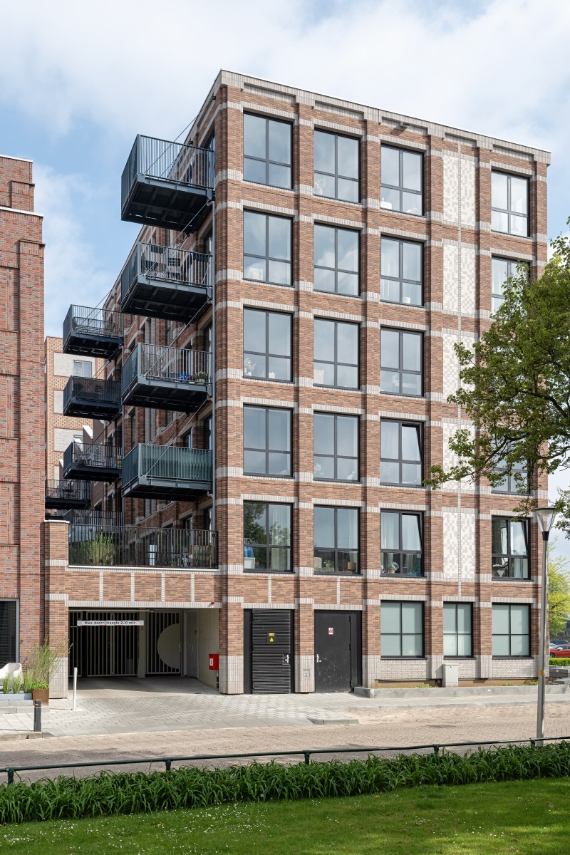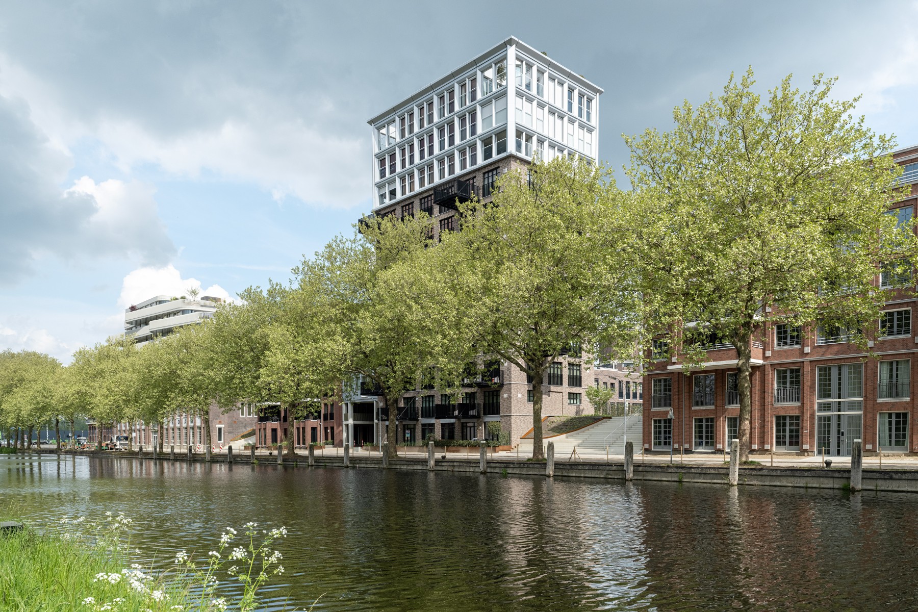 Le complexe résidentiel se compose de treize blocs résidentiels qui forment ensemble une unité claire, mais qui possèdent néanmoins chacun un caractère propre. « Nous avons recherché la variation au sein de la cohérence », remarque Verbeek. « La largeur des bâtiments résidentiels le long du canal est presque identique, inspirée par la largeur du bâtiment monumental EDAH. Cela assure rythme et reconnaissance. »