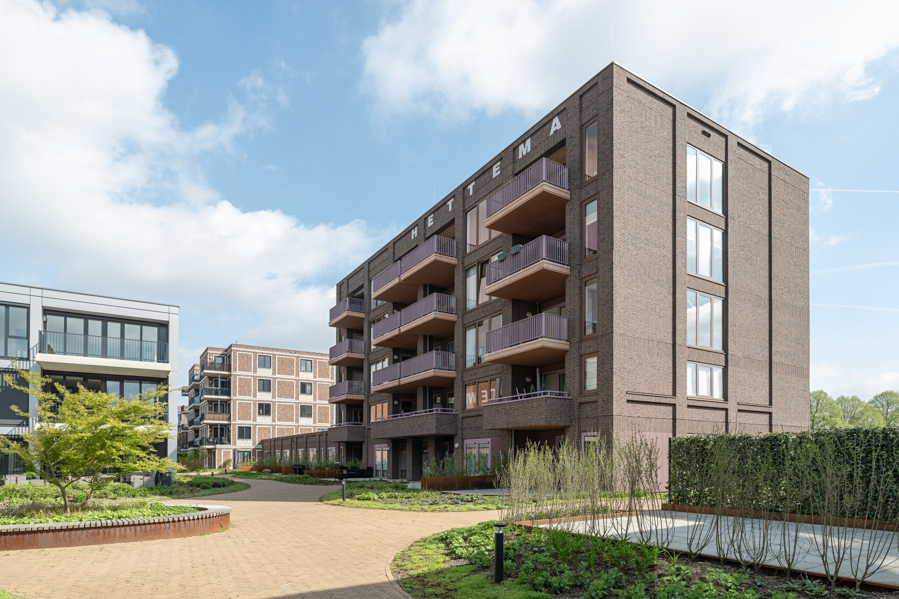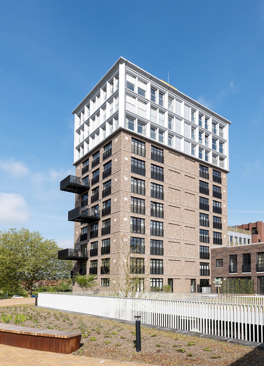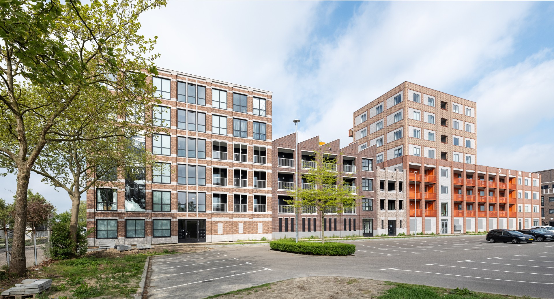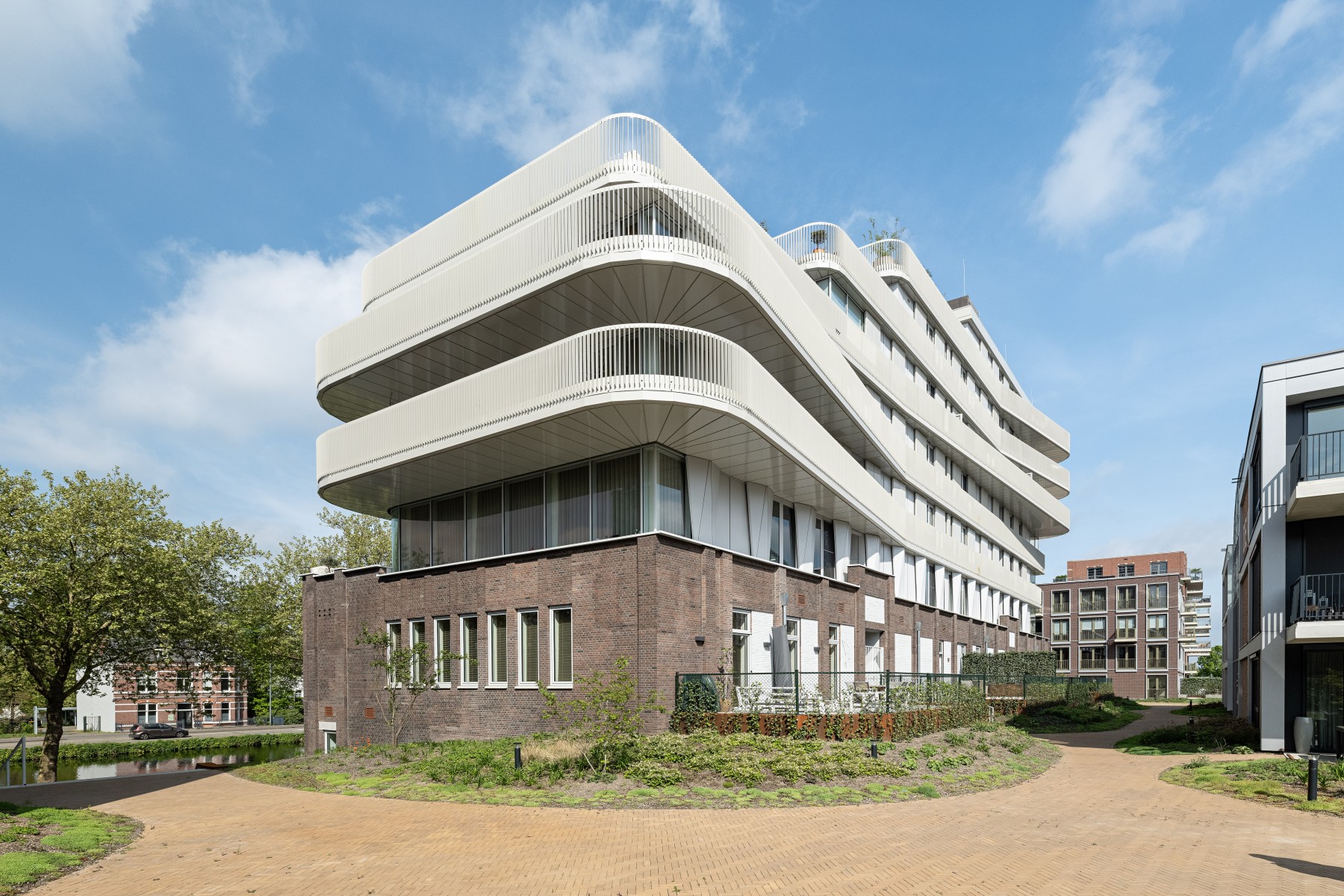 Le complexe résidentiel se compose de treize blocs résidentiels qui forment ensemble une unité claire, mais qui possèdent néanmoins chacun un caractère propre. « Nous avons recherché la variation au sein de la cohérence », remarque Verbeek. « La largeur des bâtiments résidentiels le long du canal est presque identique, inspirée par la largeur du bâtiment monumental EDAH. Cela assure rythme et reconnaissance. »