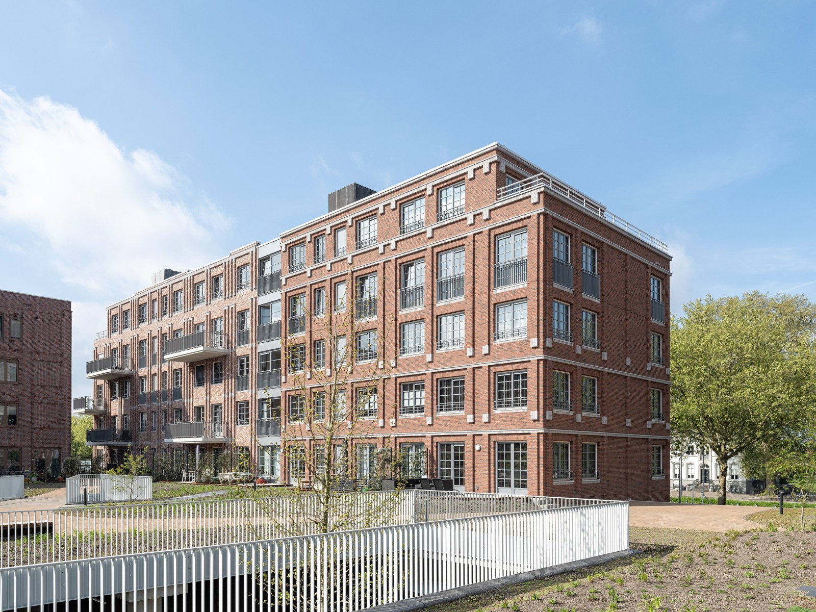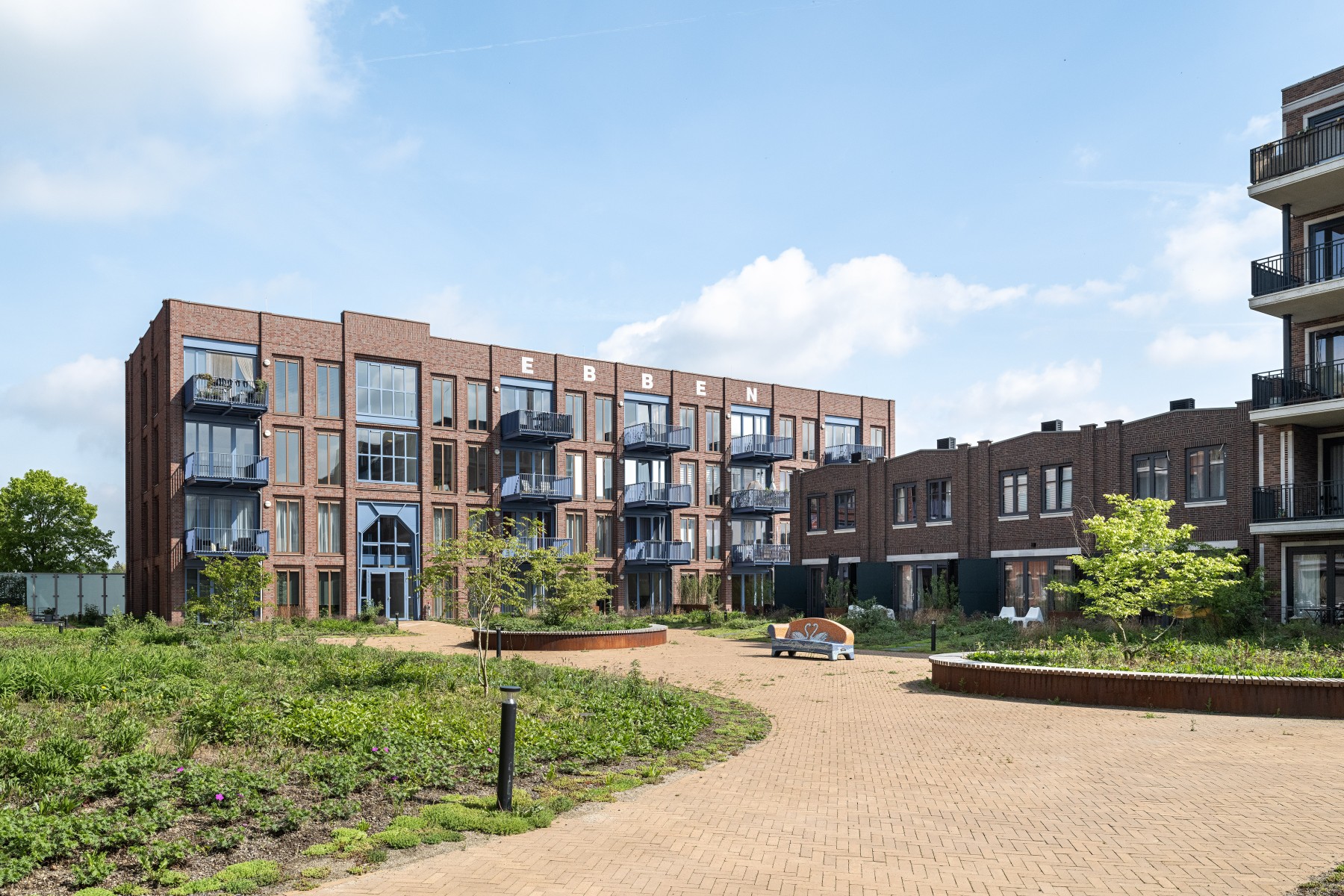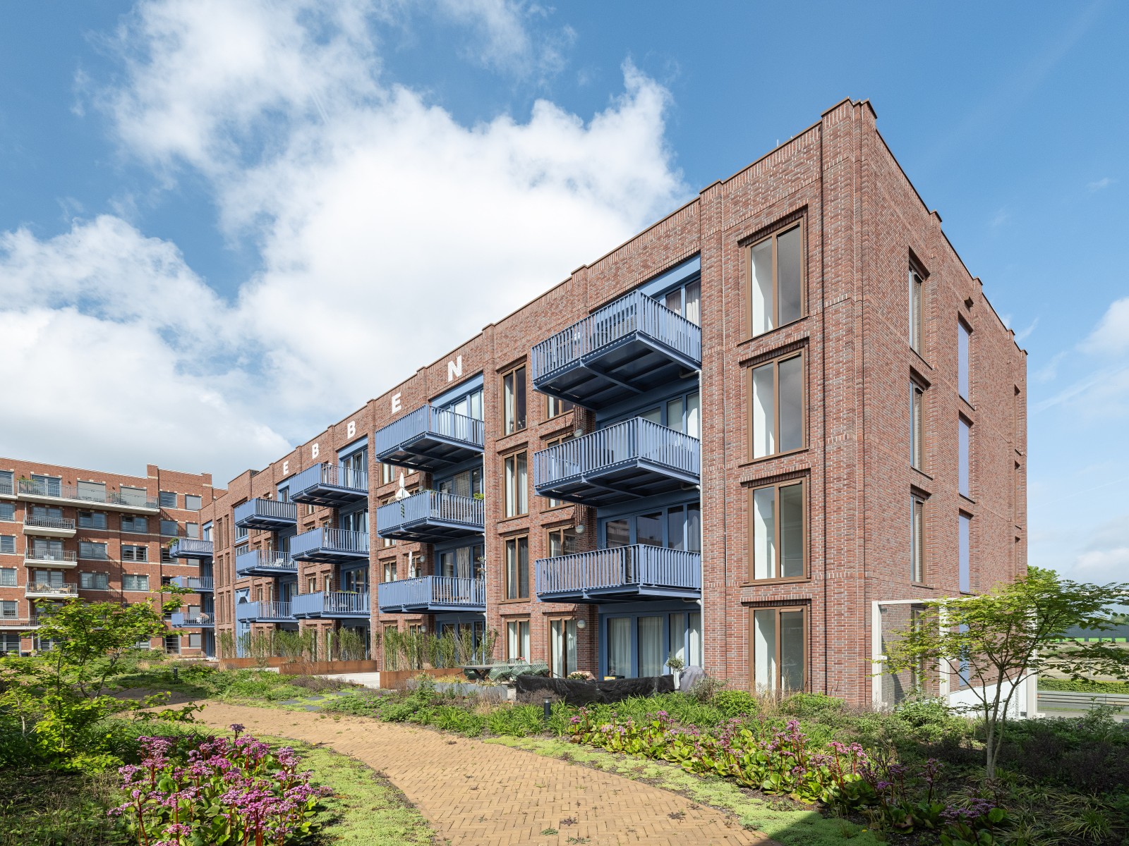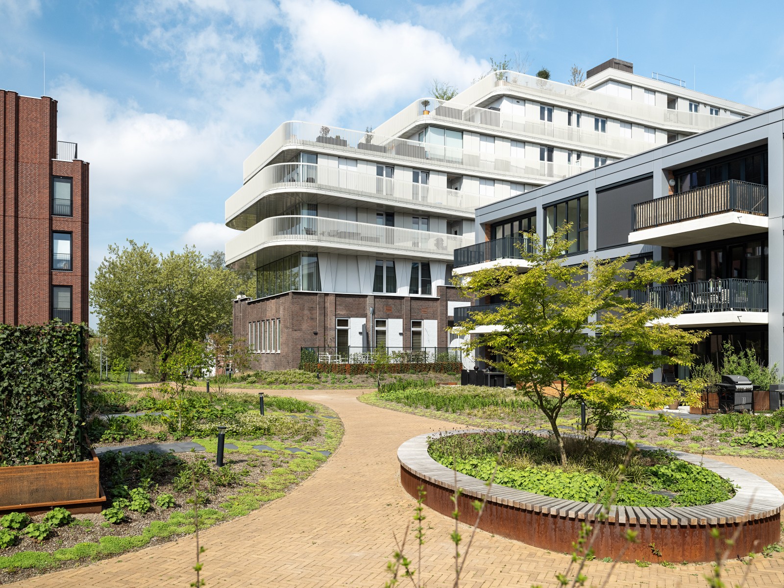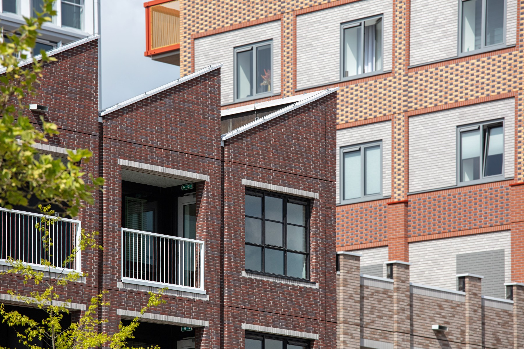 Le complexe résidentiel se compose de treize blocs résidentiels qui forment ensemble une unité claire, mais qui possèdent néanmoins chacun un caractère propre. « Nous avons recherché la variation au sein de la cohérence », remarque Verbeek. « La largeur des bâtiments résidentiels le long du canal est presque identique, inspirée par la largeur du bâtiment monumental EDAH. Cela assure rythme et reconnaissance. »